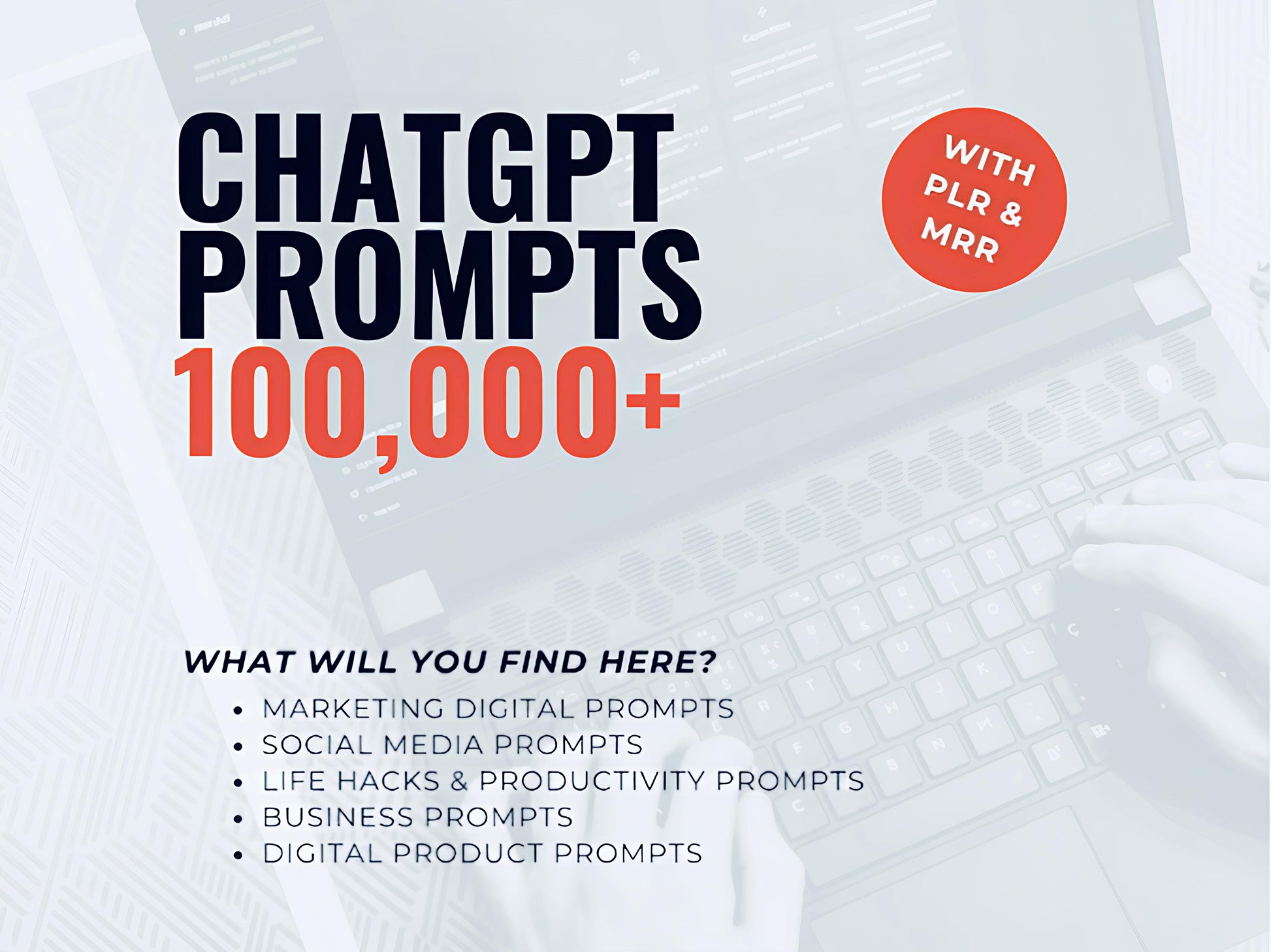 100K ChatGPT Prompts PLR | AI Prompts for Business, Marketing & Social Media | Make Money